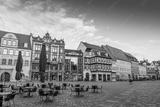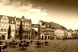 QUEDLINBURG, GERMANY, 28 JULY 2020: beautiful market square with half timbered houses at twilight