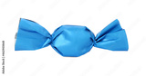 Delicious candy in light blue wrapper isolated on white