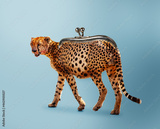 Budget safari - happy cheetah and wallet concept