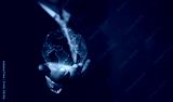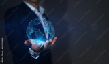 Hand holding earth globe on molecules technology background. Global networking connection and communication technology.