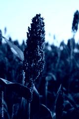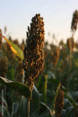 Sorghum or millet plants in the field at dawn. Sorghum agricultural cultivation in northern Italy