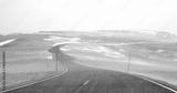 Empty asphalt mountain road during blizzard, Colorado, USA.