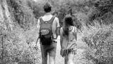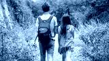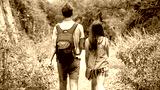 View of a walking couple on the Island of Sainte-Marguerite, France