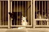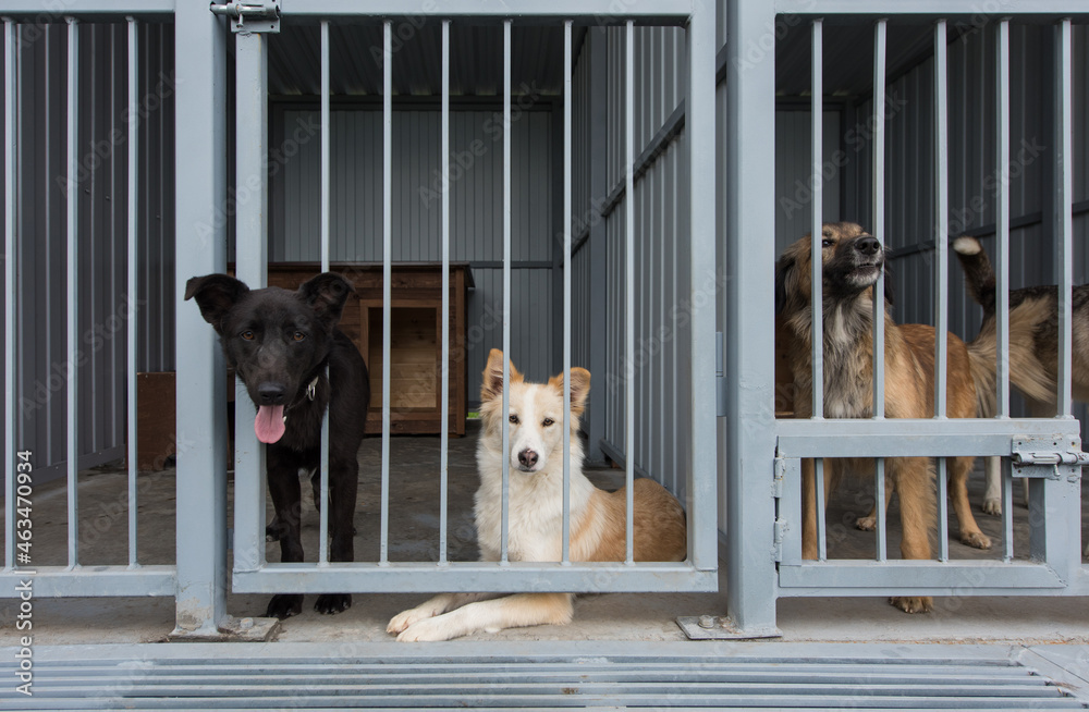 Dogs in enclosures. Center for keeping and protecting homeless animals.