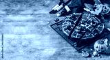 Chocolate cobweb brownies with candy spiders, homemade treats for Halloween on rustic wooden background