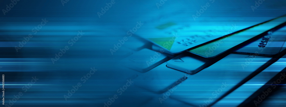 bank cards on the keyboard
