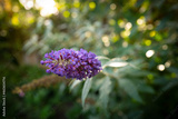 Close-up view of a healthy purple flower seen in a botanical gardens in early autumn. The flowers are late flowering shrubs seen in a large, public garden.
