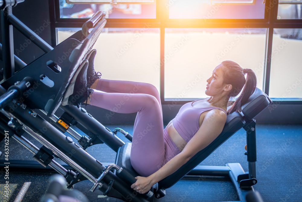 Sport fitness athlete woman with sportwear training weightiness equipment at gym for bodybuilding healthy lifestyle concept.