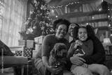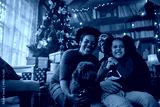 Mixed race family celebrating winter holidays with their pet at home