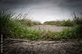 Ground level view of a concrete path leading to a Cold War military bunker which is out of view in the far distance.