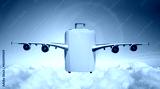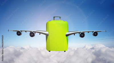 Suitcase with wings fly in clouds - travel concept
