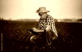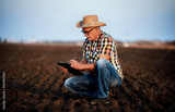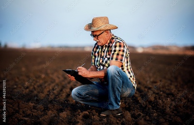 Farmer controls the soil and making a notes before sowing in the field. Agricultural concept