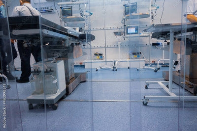Mobile hospital with sliding module. Interior of a new military mobile hospital