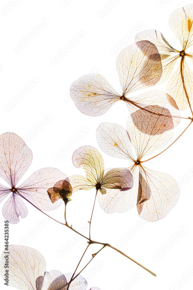 hydrangea flowers on the white background