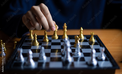 Chess board game knight gold team is winner silver team stategy game as business challange competitive game ,this business stategy plan concept.
