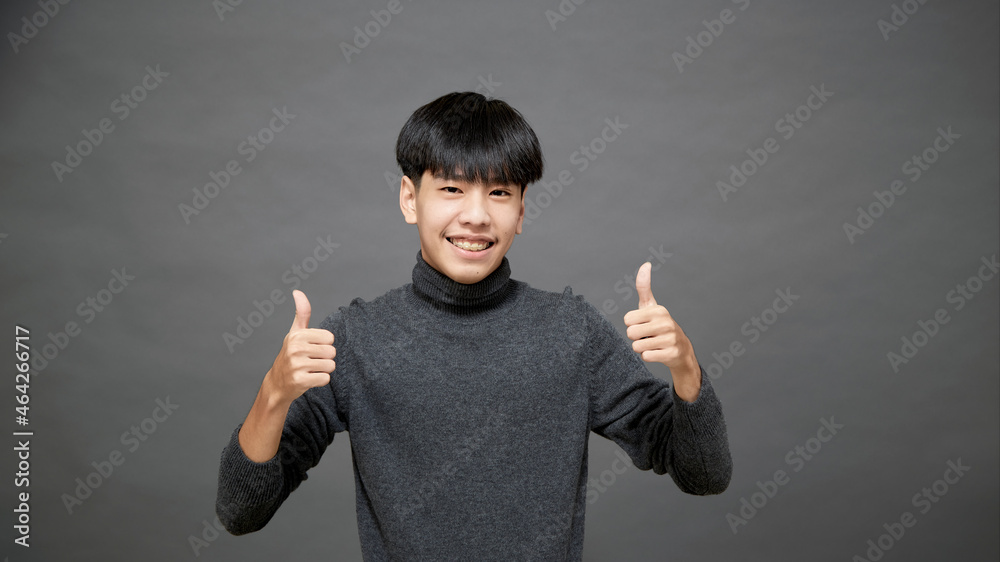 Young Asian teenage cool hair stylish wearing grey sweater