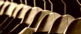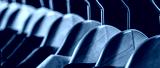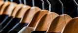 Mens shirts, suit hanging on rack. Mens suits in different colors hanging on hanger in a retail clothes store, close-up