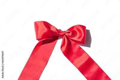 Red festive bow on the white background. Christmas or Valentine's day concept card.