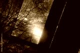 Eco-friendly building in the modern city. Green tree branches with leaves and sustainable glass building for reducing heat and carbon dioxide. Office building with green environment. Go green concept.