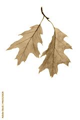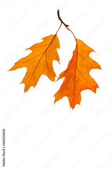Two leaves of red oak on a twig. Autumn set, herbarium element