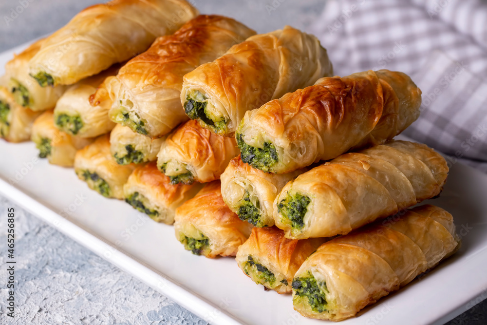 Turkish Tepsi Boregi, Round Borek, Tray pastry (Turkish name; rulo borek)