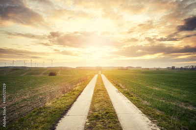 Concrete county road at sunset.