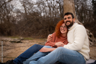 Young couple enjoying the autumn day at park