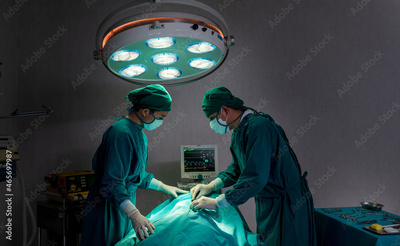 Team of professional doctors surgeons wearing safety uniform and surgical gloves preparing preferment operation in operating room for patient at hospital.