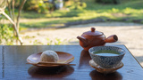 饅頭と日本茶|縁側でお茶菓子イメージ
