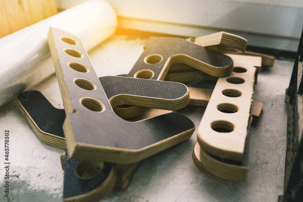 Wooden parts. Furniture workshop. Wooden blanks for assembling furniture with your own hands. Craft hobby