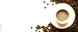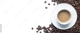 Panoramic view of cup of coffee isolated on white background with copy space. Top view.