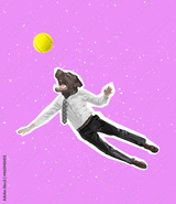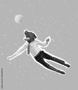 Modern design, contemporary art collage. Inspiration, idea, trendy urban magazine style. Flying man with dog's head