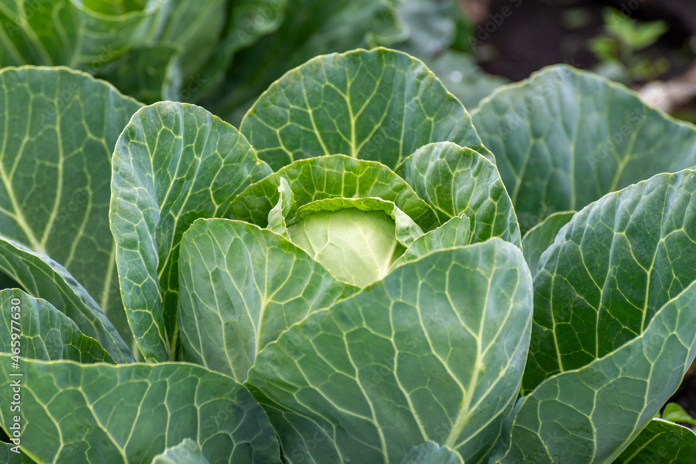 One cabbage grows in a market garden