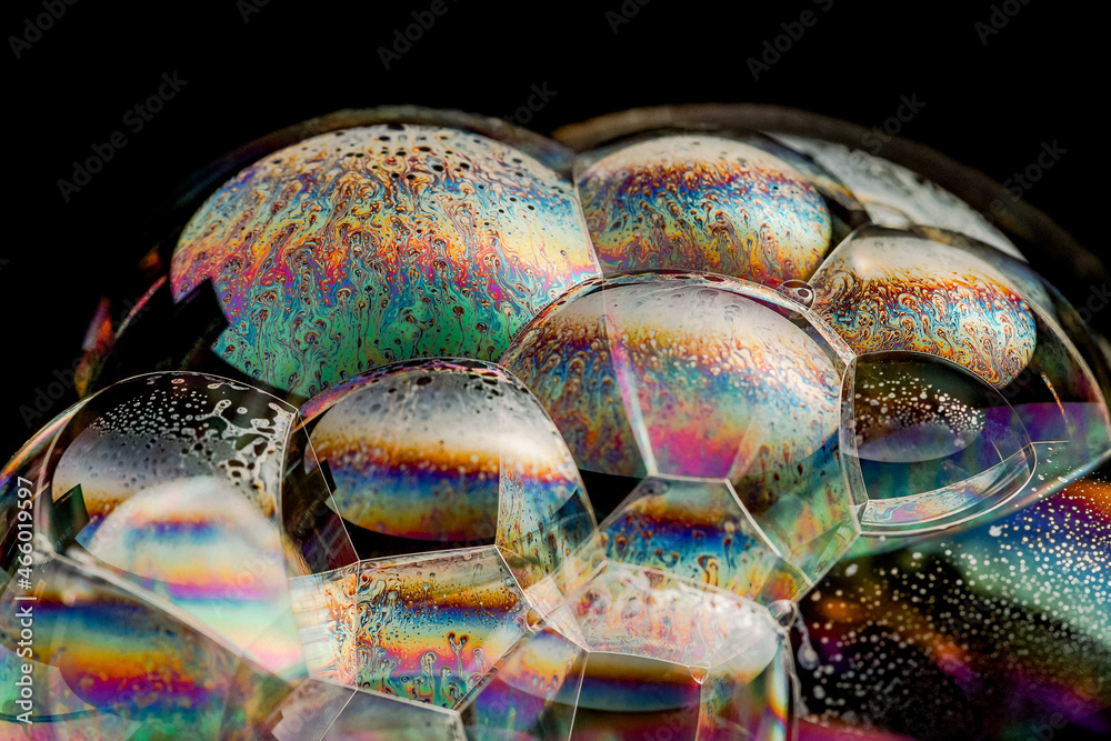 macro soap bubbles made with dish soap. detergent bubbles. Imitation of an unknown planet. Children's entertainment. Science fiction.