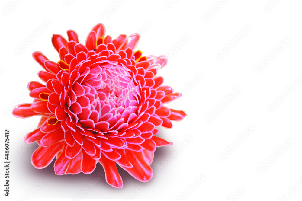 Just a red Torch Ginger flower on white floor, clipping path effected