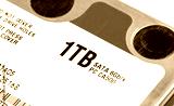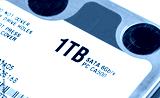 1 TB hard drive storage space , simple one terabyte 2.5 inch HDD object macro, extreme closeup, number label, nobody, detail shot. Hard disk digital data capacity, 1000 gb drive size simple concept