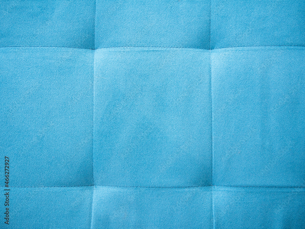 Simple high resolution blue sofa cushion soft comfy background material texture, structure closeup, backdrop, nobody. Comfort, softness and coziness abstract concept. Top view, object seen from above