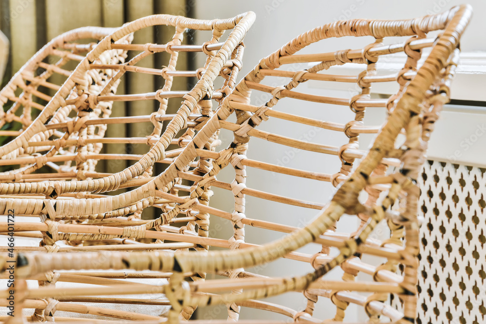 Wicker bamboo chairs in luxury dining room