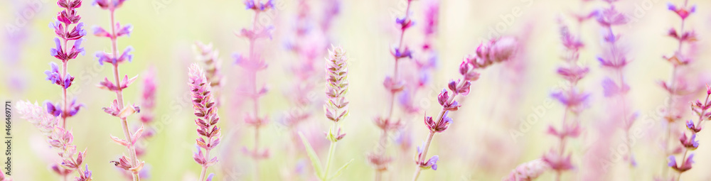 Floral background - summer wild flowers in nature, panoramic view of macro