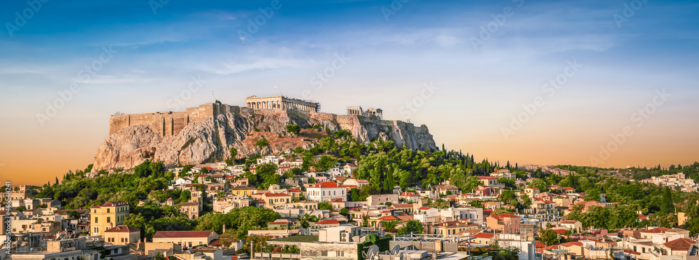 Athens, Greece panoramic Acropolis view at sunset.