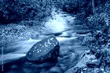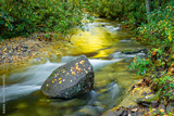 Bright yellow color of the sun reflects off the water in Davidson River in Pisgah Forest.
