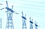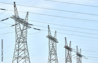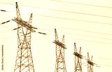 View of high voltage transmission towers.