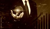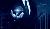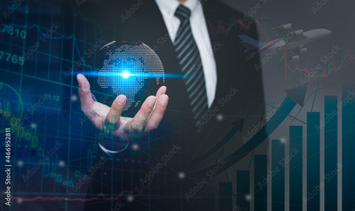 Businessman wearing suite show holding global network and data exchanges ,investment graphic and logistic transport over the world on hand is concept of global business
