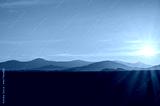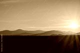 sunset over Zittau Mountains with colourful sky shot against the sun