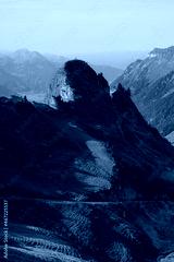 Amazing hiking day in the alps of Switzerland. A beautiful locomotive drives on to a mountain and a lot of smoke comes out of the locomotive. What a view in the background.