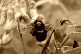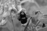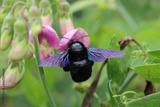 Close-up of Xylocopa violacea on summer. Violet carpenter bee on a pink sweet Pea flower in the garden