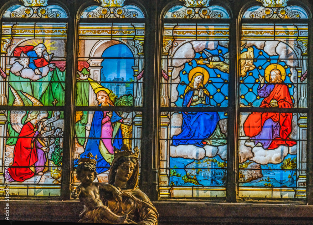 Mary Statue Annunciation Stained Glass Saint Catherine Church Honfluer France