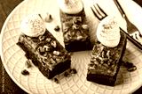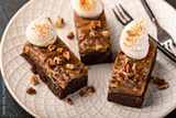 Chocolate pecan pie bars with caramel sauce