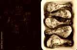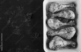 Baked chicken drumsticks on a dark background. Top view, flat lay