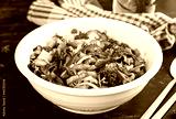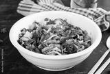 Salad baked eggplant and fresh tomatoes. Warm eggplant salad.